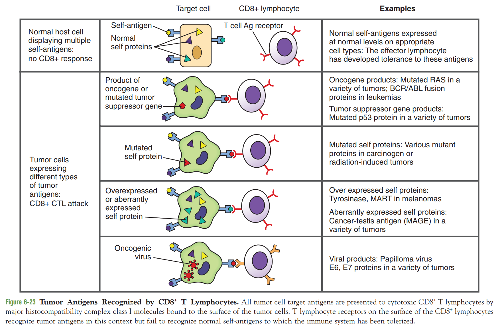 - 외부 병원체, 동종/이종 이식된 조직을 공격하는 면역계. 같은 mechanism이 tumor cells의 self-antigens도 공격함.