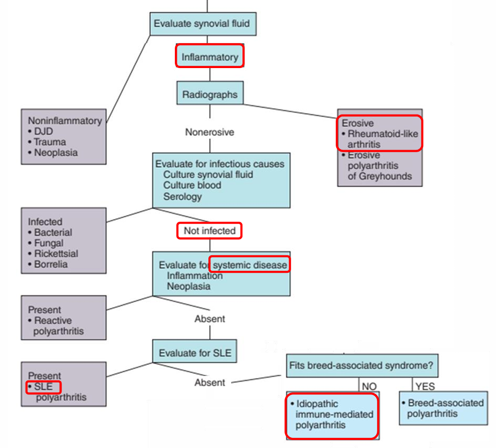 Fig. Joint pain 있는 개의 진단 알고리즘
