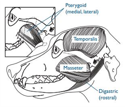 - 저작근 : Temporalis(관자근), Masseter(깨물근), Digastricus(두힘살근)