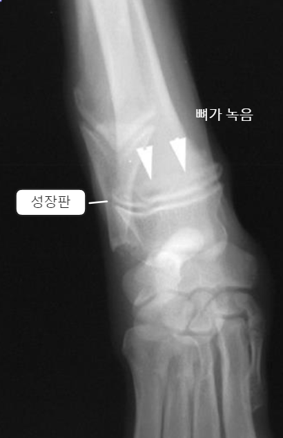 - Physeal line의 손상이 심해 각기형? 등 문제가 될 수 있음.