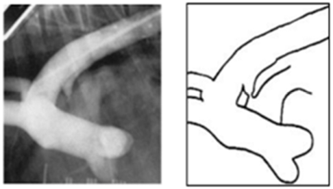 • 양쪽 valve가 다 이상하면(bivalvular disesase), 양쪽 심방에서 dilation → 심장이 계란 모양에서 valentine shape, heart shape으로 변함.
