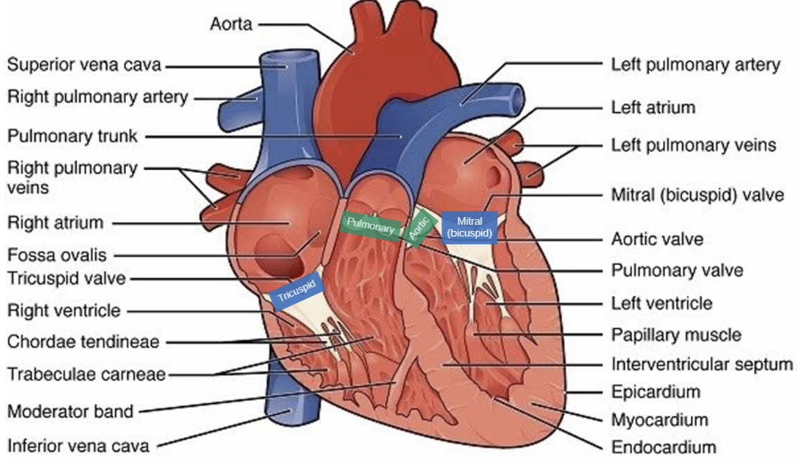 • 2 Artrioventricular valves : 방실판 (심방과 심실 사이)