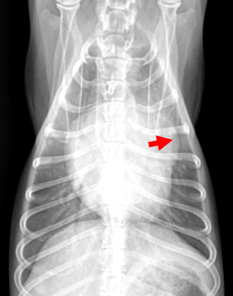 Mitral valve (LA-LV 사이) 판막 역류 → 좌심방 혈액량 증가 → 폐정맥 혈액량 증가 → 폐정맥 비대 → 폐도 congestion → 혈액이 혈관을 따라 밖으로 흘러나오면서 폐도 물이 참 → tachypnea, 호흡 곤란, 산소 포화도 감소