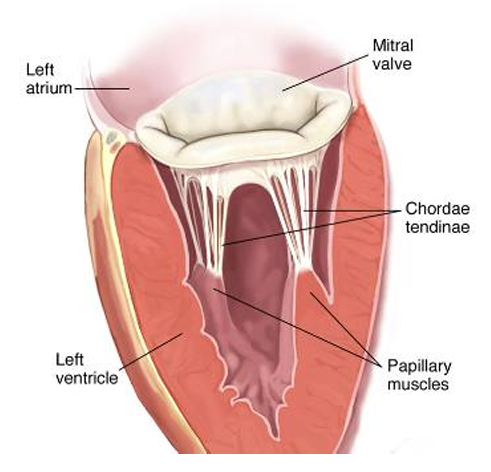 정의Chorda tendinae가 너무 가까이 붙어 있어, papillary mm이 너무 많이 수축하여 판막을 계속 열어둔 상태