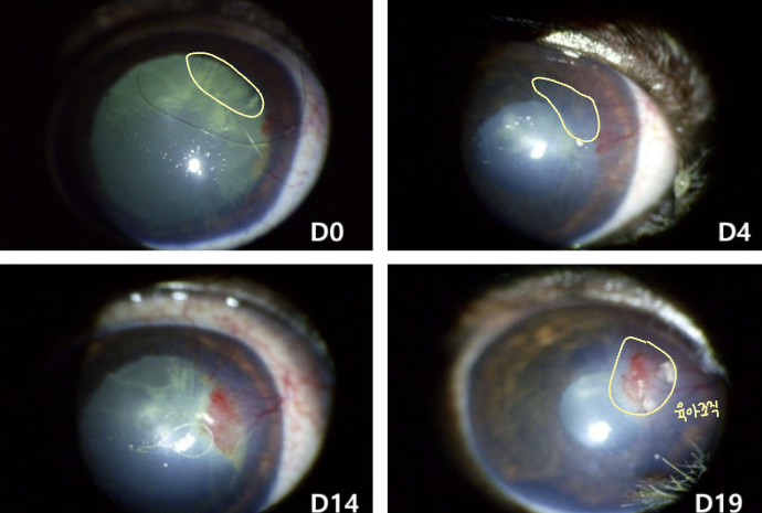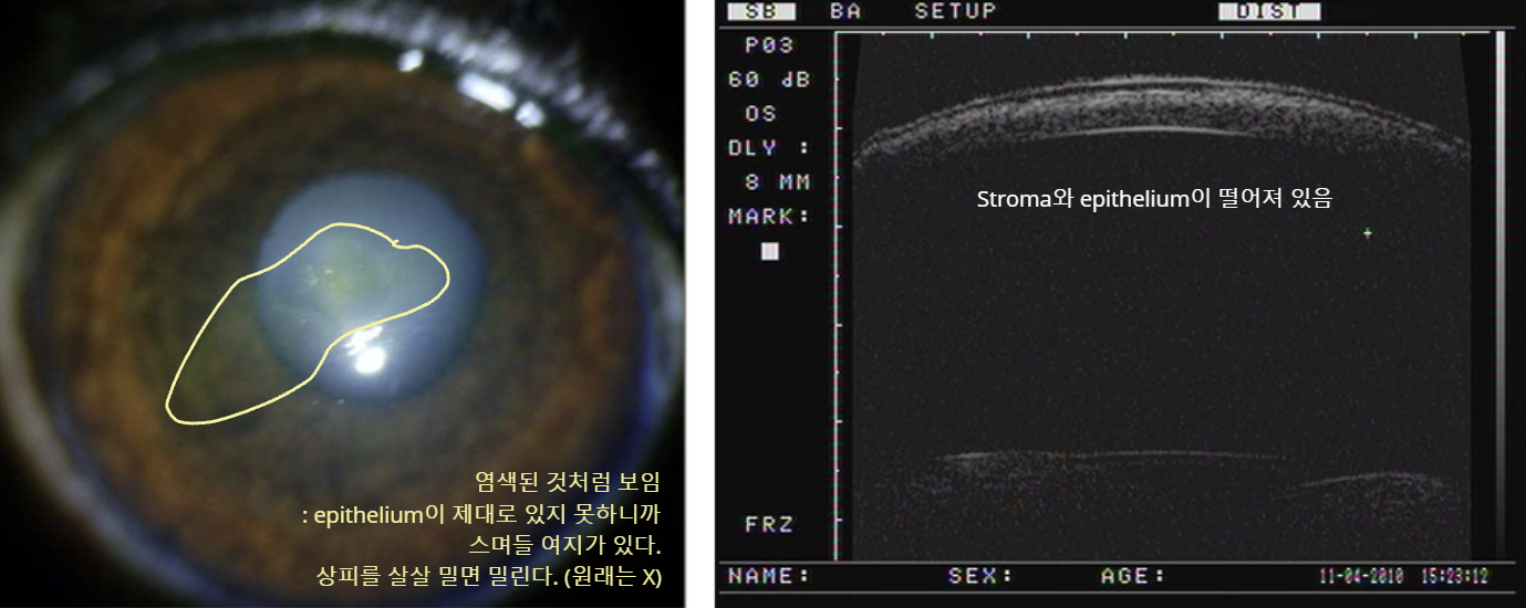 - vesi.. 안약을 과도하게 처방해서 epithelium 손상