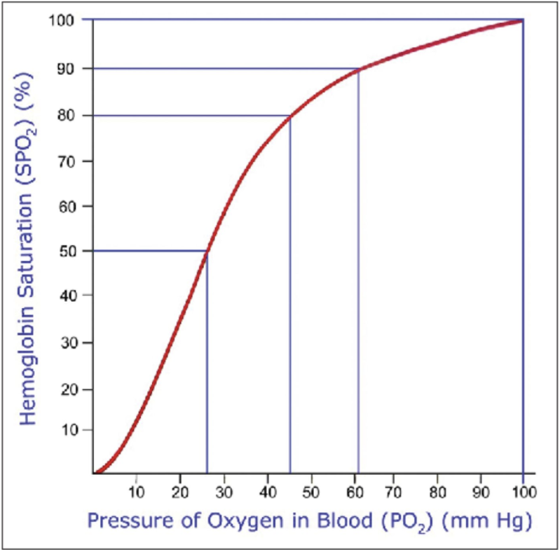 • PaO2가 100mmHg 이상이면 정상 헤모글로빈은 포화 (almost totally saturated).