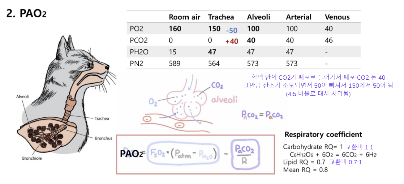 • PaO2, PaCO2 : 동맥혈 안에 있는 O2/CO2의 분압