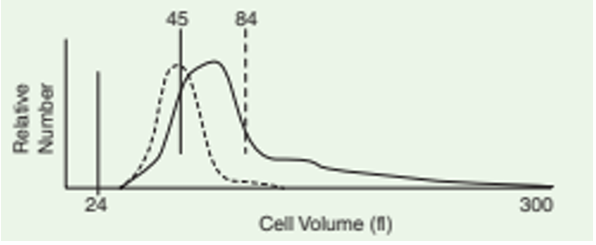 ![]() | - ์ ์ ์ด ์ ์, ์ค์ ์ด ์ด ํ์. - MCV๊ฐ ์ฆ๊ฐํ๊ธด ํ์ง๋ง.. ํ๊ท ๊ฐ์ด 84์ด๊ณ , 300 ๊ฐ๊น์ด RBC๊น์ง๋ ๊ด์ฐฐ๋จ. - Reticulocytosis/Rubricytosis๊ฐ ์๋ค๊ณ ํด์ ๋ํ๋ ์ ์๋ ์์ค์ ์๋. - ์ธํฌ์ ํฌ๊ธฐ๊ฐ ์์ฃผ ํฌ๊ณ ๊ทธ๋ํ์ ๊ผฌ๋ฆฌ๊ฐ ์์ฃผ ๊ธธ๋ค โ Agglutination ๋๋ Rouleaux - MCV 2๋ฐฐ ์ ๋๋ฉด Agglutination/Rouleaux ์ ๋ํ ๊ณ ๋ ค ํ์. |
