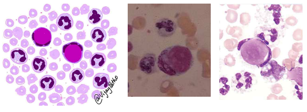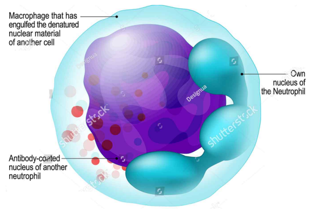 - LE cell : 탐식된 핵 물질을 가진 호중구. 탐식 물질 때문에 호중구의 segmented nucleus가 한쪽으로 쏠린 모양을 나타냄.