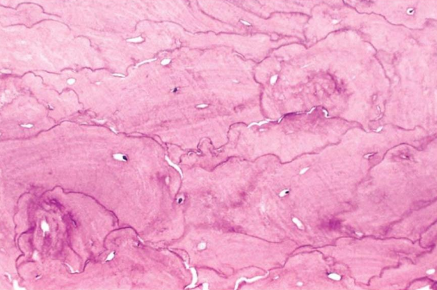 ![]() | - Osteon의 경계를 나타내는 cemet line의 Mosaic pattern - 원래 원형인데, 구불구불하게 무너짐. |