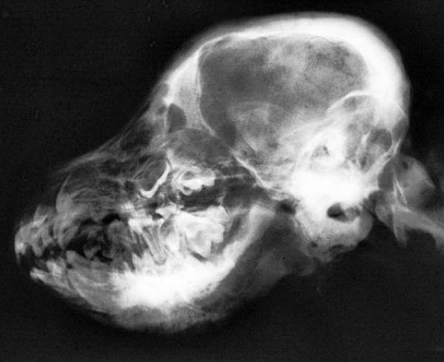 ![]() | - mandible 쪽 경계가 무너져 있음. - skull 뒤쪽이 확연히 두꺼워져 있음. |