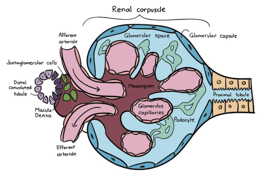 - 네프론 = 신소체(renal corpuscle) + 신세뇨관(renal tubules)