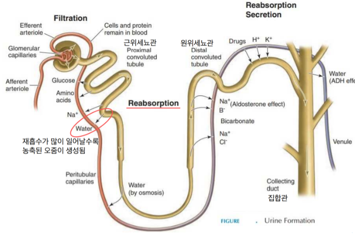 농축 기능은 신체 내 수분과 혈액 농도 유지에 중요.