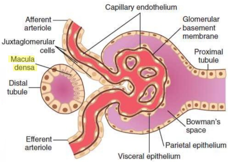 • Juxtaglomerular apparatus (사구체옆장치) : 사구체 여과율 조절, 호르몬(renin 등) 분비