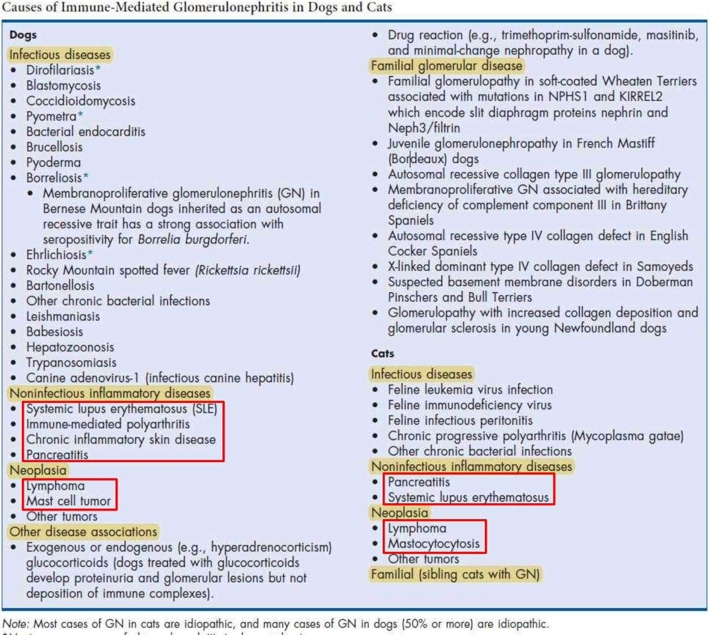 • Glomerular disease : GN 고양이의 75%가 male / 개에서는 없음