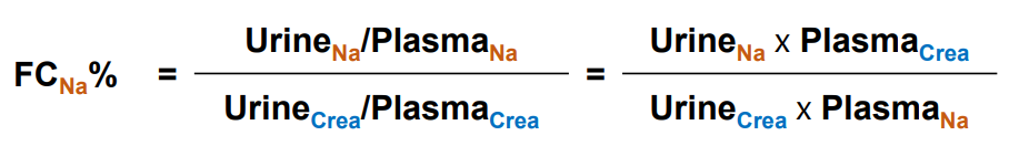 - 특정 전해질과 creatinine을 소변 및 혈장에서 측정 후 공식에 대입