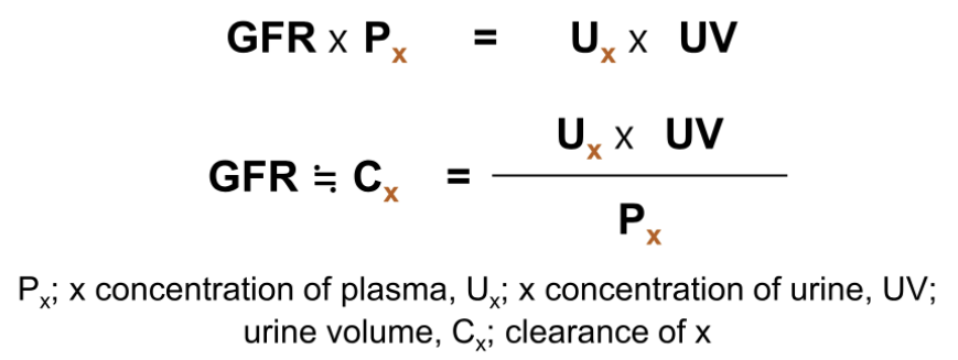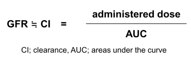 - 외부에서 물질을 주입하여, 일정 시간 동안 [혈장에 존재하는 양] & [소변으로 빠져나가는 양] 을 파악하여 공식을 통해 측정