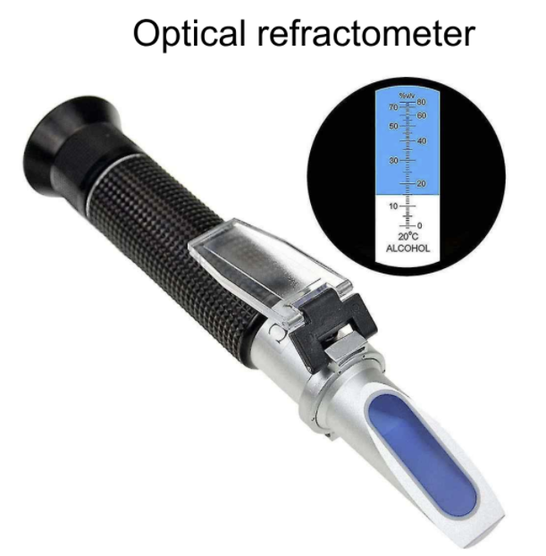 - 굴절계(optical refractometer)로 측정. 여러 번 측정해야 정확도 높아짐. (사람에 비해 스틱은 부정확)